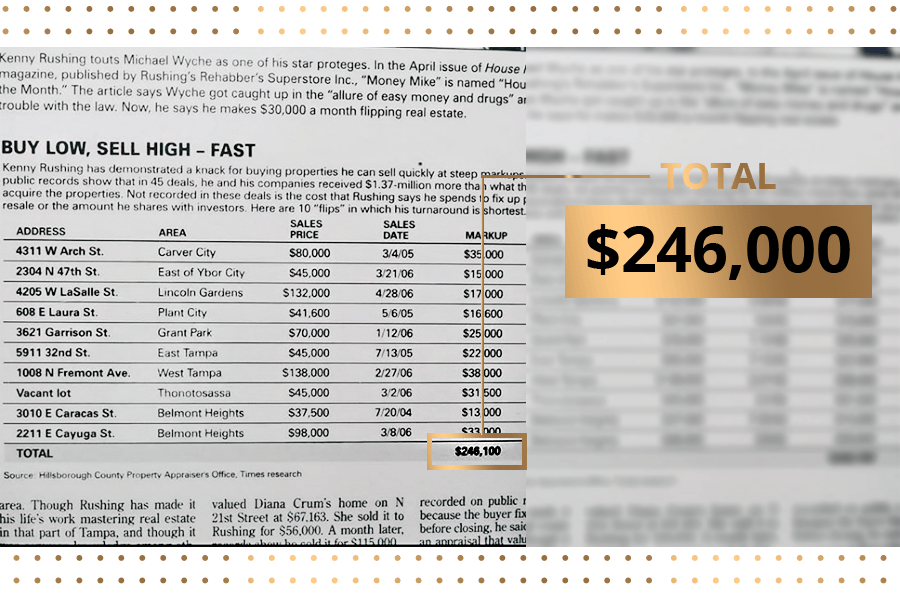 As you now know, it was my $1 Deal Making strategy that got me in the game, a game that someone who was broke and had bad credit should not have been allowed to play in. After doing dozens and dozens of deals I amassed enough cash to become a serious contender in the business and I soon dominated the wholesale real estate market in Tampa, Florida. Essentially, if you wanted to buy a wholesale home you had to come see me. I had cornered the market. Take a look at the article I have included for your review.
